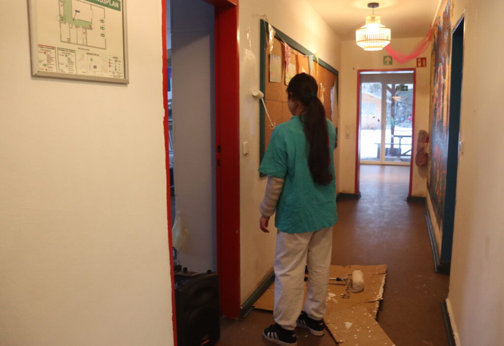 Vom 16. bis 20. Februar hatten wir in der Villa eine Putzwoche. Maida und ich machten mit, weil wir wollen, dass wir und die anderen sich hier wohler fühlen. Wir haben die Wände im Flur gestrichen. Es war ein bisschen schwer, weil wir uns konzentrieren mussten, damit die Wände clean aussehen.