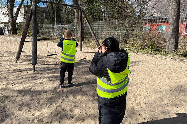 In diesem Jahr beginnt das Beteiligungsverfahren für die umfassende Neugestaltung des Spielplatzes und des Senkgartens an der Rohrbeckstraße, ein Baufondsprojekt im QM-Gebiet Germaniagarten. Damit sollen die Wünsche und Bedürfnisse der zukünftigen Nutzer*innen erfasst und in die Planungen eingebunden werden. Da die Kinder der „Villa Holz“ am 7. April 2026 sowieso im Kiez unterwegs waren, um Ostereier zu suchen, haben sich die Kinderreporter eine Kamera geschnappt und fleißig fotografiert: was sie gut finden, was sie stört und wo man etwas verändert sollte.