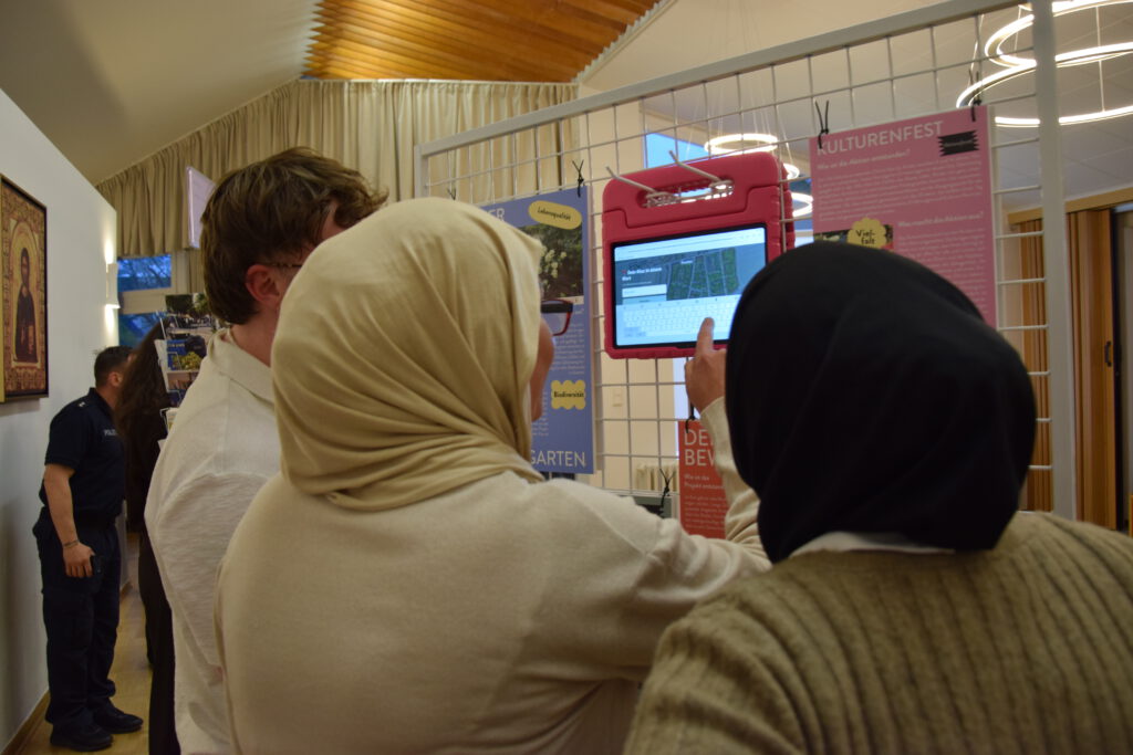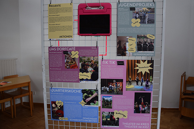 Die kleine Ausstellung gab einen Überblick über das QM-Gebiet und die abgeschlossenen Projekte - und man konnte die aktuelle Ausstellung sogar aktiv erweitern. "Beschreibe deinen Kiez in einem Wort" galt es an einer Station.