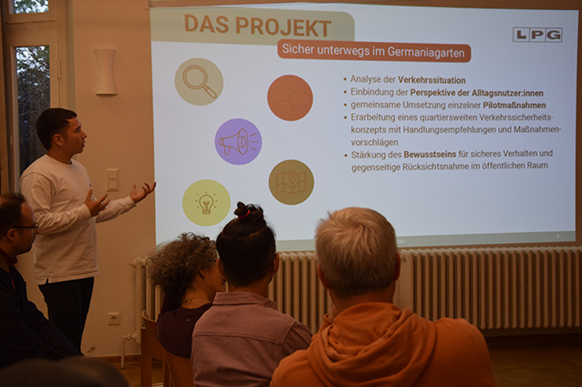 Das Forum ist auch immer ein guter Anlass, um neue Projekte vorzustellen: „Sicher unterwegs im Germaniagarten“ startete am 1. März 2026 und läuft bis Ende 2027. Tom Pham führt zusammen mit Melanie Troes das Projekt durch und erläuterte, was sie erreichen wollen und in den kommenden Wochen und Monaten vorhaben. Beim „Tag der Städtebauförderung“ am 9. Mai und beim Kulturtag „AHOI!“ mit Spiel- und Nachbarschaftsstraße in der Bacharacher Straße am 29. Mai sind sie dabei und freuen sich auf angeregte Gespräche mit Bewohner*innen.