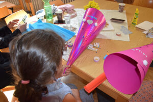 Am 04.06. und 06.06. laden die Stadtteilmütter in Kooperation mit der Serbisch-Orthodoxen Kirche wieder zum gemeinsamen Schultüten basteln ein. Über den Aktionsfonds wird sowohl Bastelmaterial als auch Schulmaterialien zum Füllen der Schultüten eingekauft. Auch für Snacks und Getränke wird gesorgt. Die Aktion hat das Ziel, dass alle Kinder im Kiez an ihrem Einschulungstag eine schöne und volle Schultüte in der Hand halten und der erste Tag im neuen Lebensabschnitt für immer mit schönen Erinnerungen verbunden wird.